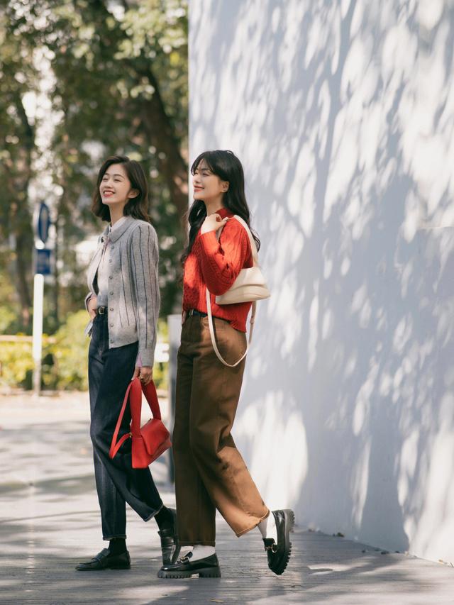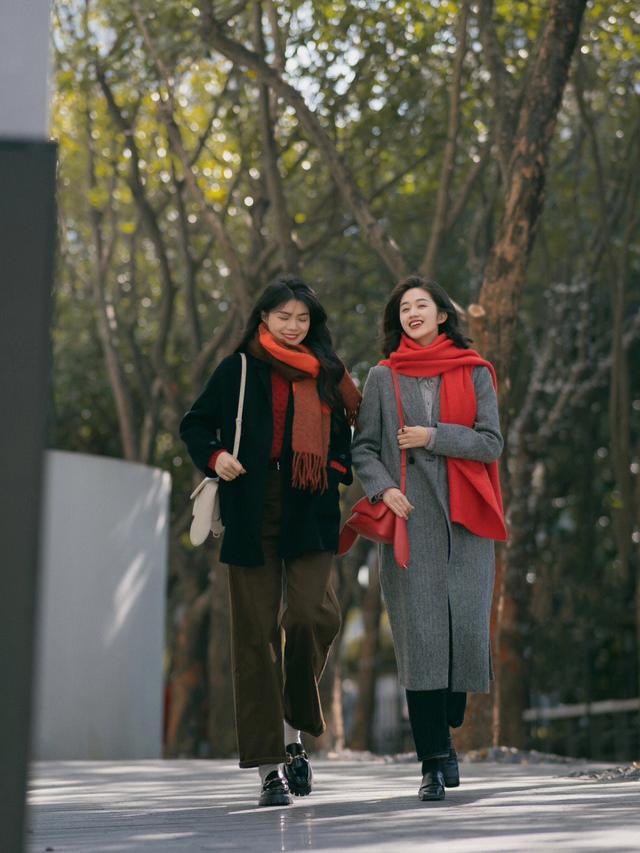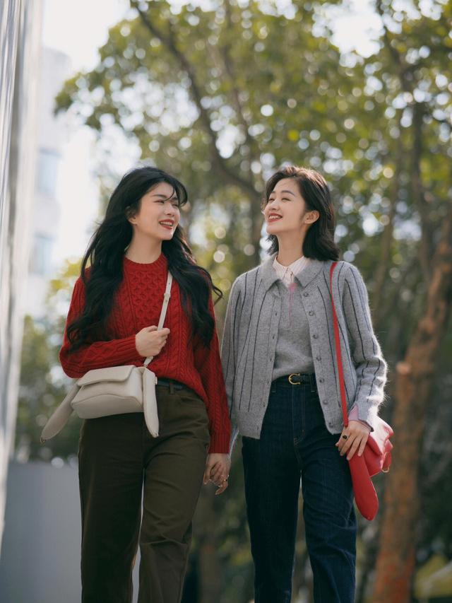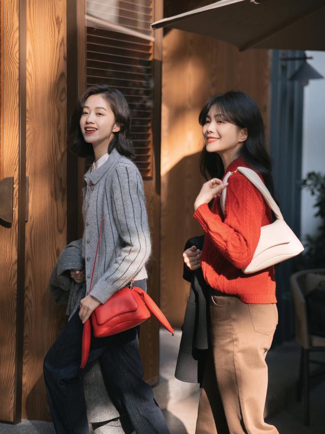 颜色搭配解析:你可以像街拍达人一样选择经典款“红色”毛衣,搭配深咖色阔腿牛仔裤,加上黑色的腰带和杏色小包包,这样的颜色搭配静的难看还很有氛围感,过年串门穿搭就很不错啦。