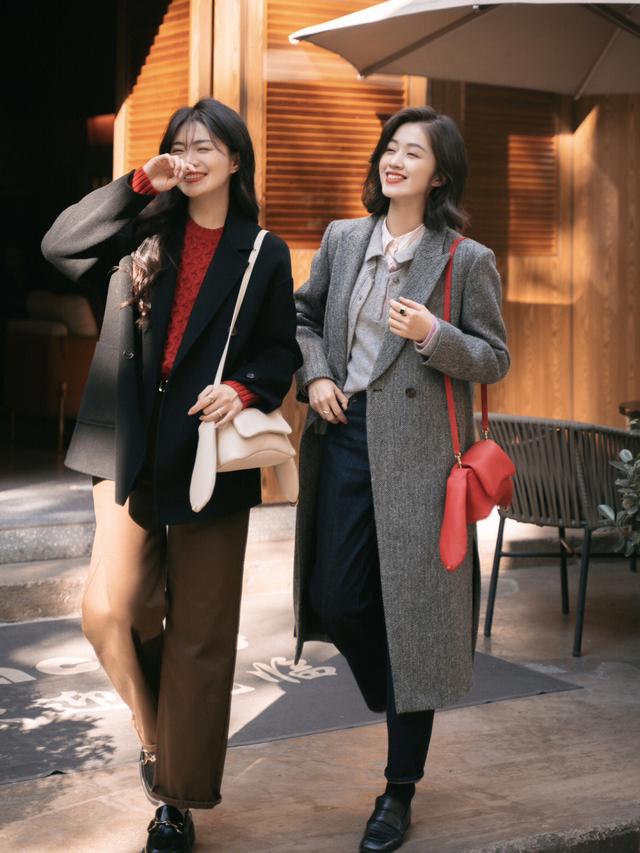 同时另一位加上了一件灰色大衣外套,她这样选择主要是和里面内搭的针织衫比较配,相近的颜色穿出来好看也好搭配,这样的 颜色组合也有一个小问题,看起来不会有太大亮点,所以街拍达人用了红色卫衣和小包包来点缀一下,整个气质感和氛围感一下不就有了嘛,特漂亮。
