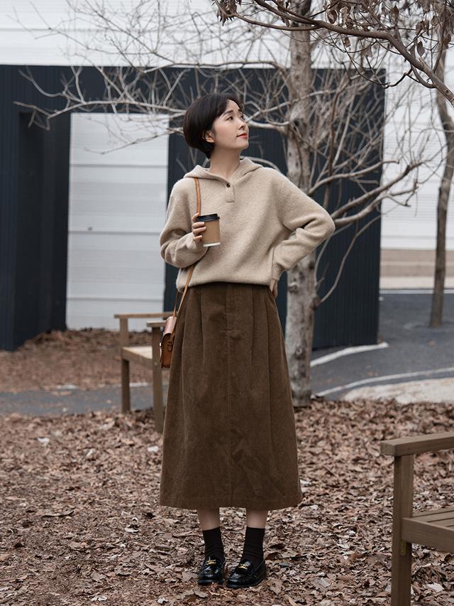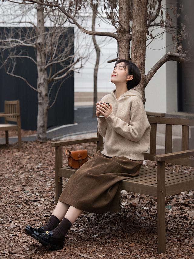 秋冬简约羊毛针织连帽衫可以和半身裙组合,这样的打扮会彰显出女性魅力,让你变得更加有女人味,温柔优雅,小个子女生穿搭了还可以达到显高显瘦效果,值得拔草的一身穿搭。