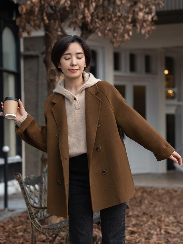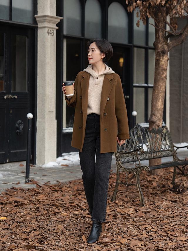大家看到的这一件大衣是和西服类似,不属于长款大衣,也是专门为小个子女生定制的衣服单品,本来个子不高穿长款大衣再压身,就能难提升我们的气质了,深咖色的大衣也非常百搭,可以和各种针织毛衣组合都很洋气,姑娘们多试一试吧,看自己穿什么样的衣服风格更加漂亮。